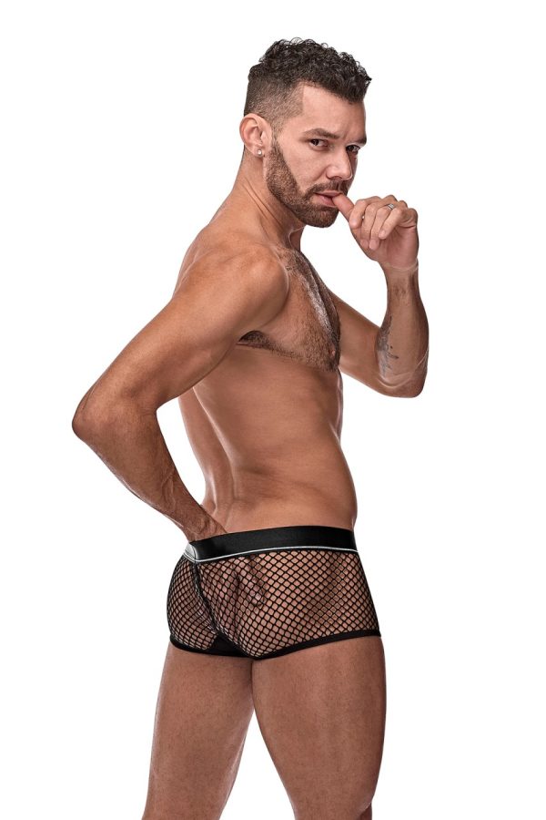 From the Cock Pit Net collection by Male Power, this style includes: A Mini Cock Ring short featuring short cut legs, a detachable snap off pouch revealing a plush elastic C-ring and a 1 1/2 ” satin finish branded waistband. Soft Stretchy window pane net, fine athletic mesh, plush elastic trim. Hand Wash Separately, Cold Water, Line Dry, Do Not Bleach
