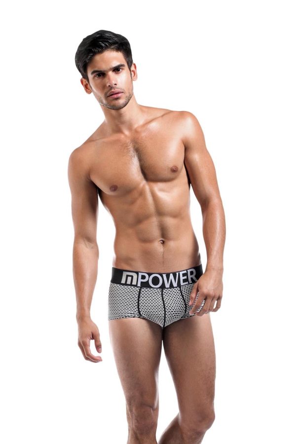 Mini short, decorative stitched pouch, bold printed logo’d plush waistband.