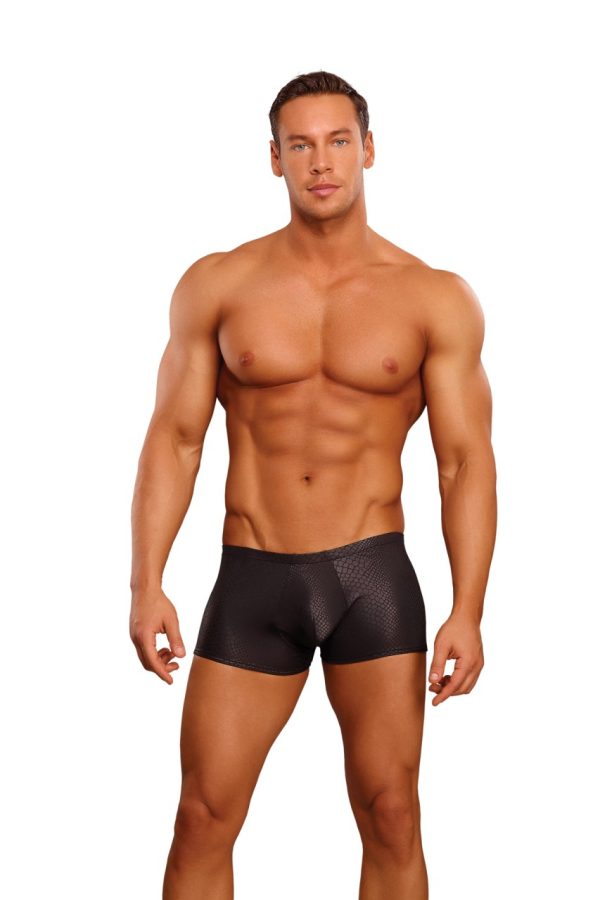 Stretch snake print mini short features comfort fit pouch and classic cut85% Nylon 15% Spandex