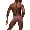 From the Male Power Inter-mingle collection this style includes a mini short with a low cut waist, high cut legs, a contour pouch and full rear coverage. Cool stretch poly spandex with an embossed tone on tone print joining both flat and raised graphics throughout. Hand wash separately, cold water, line dry, no bleach