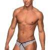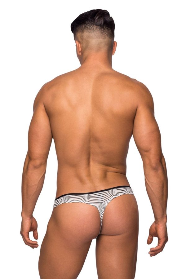 Mini thong, ultra low cut waist, 1 inch sides and back, enhancing nylon trim on waist and pouch