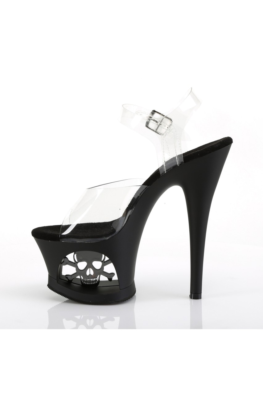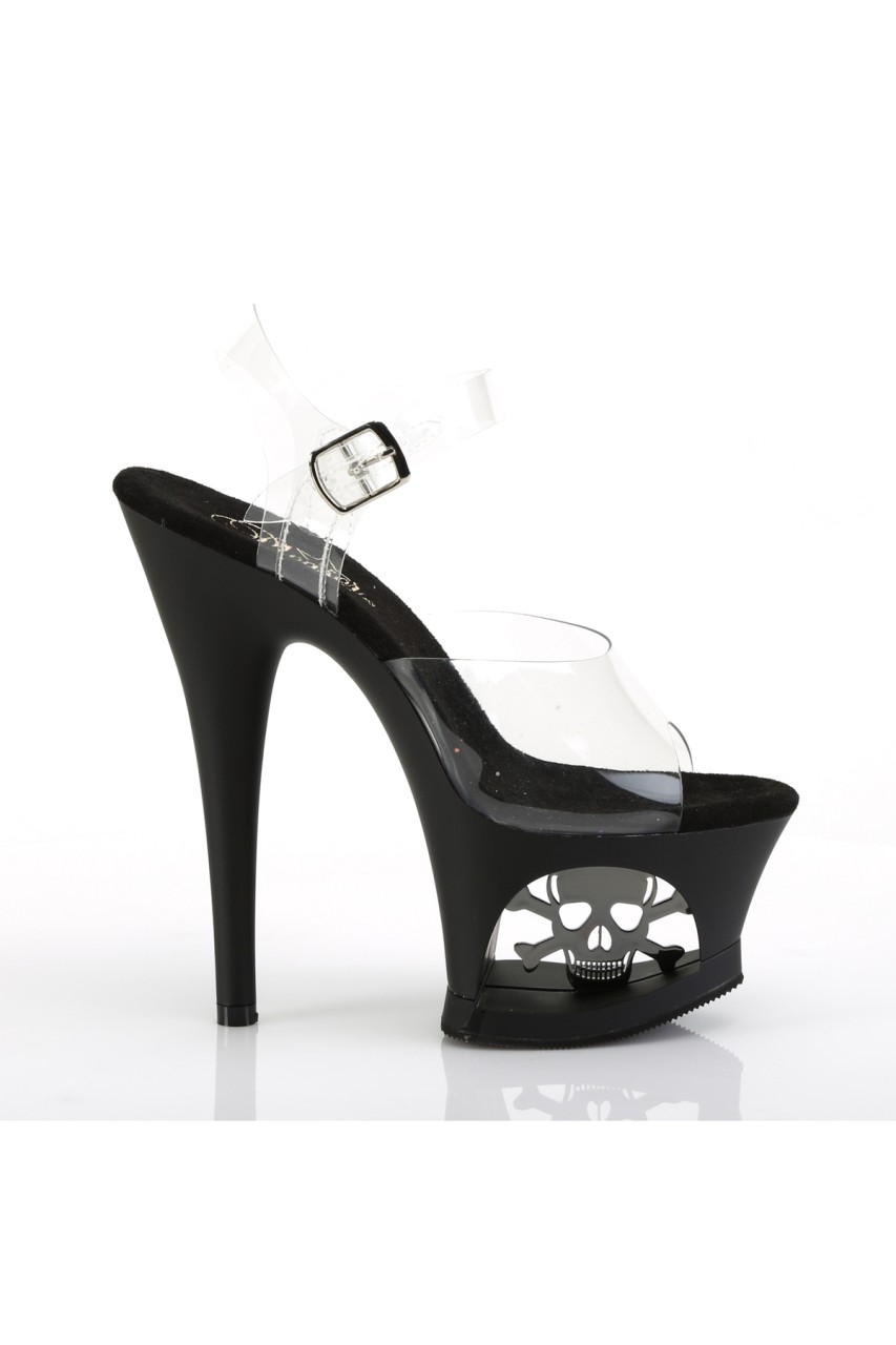 7″” (178mm) Heel, 2 3/4″” (70mm) Cut-Out Platform Ankle Strap Sandal Featuring Skull & Cross Bones In the Platform