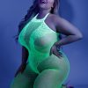 Crotchless Fishnet Bodystocking with Lace Detailing