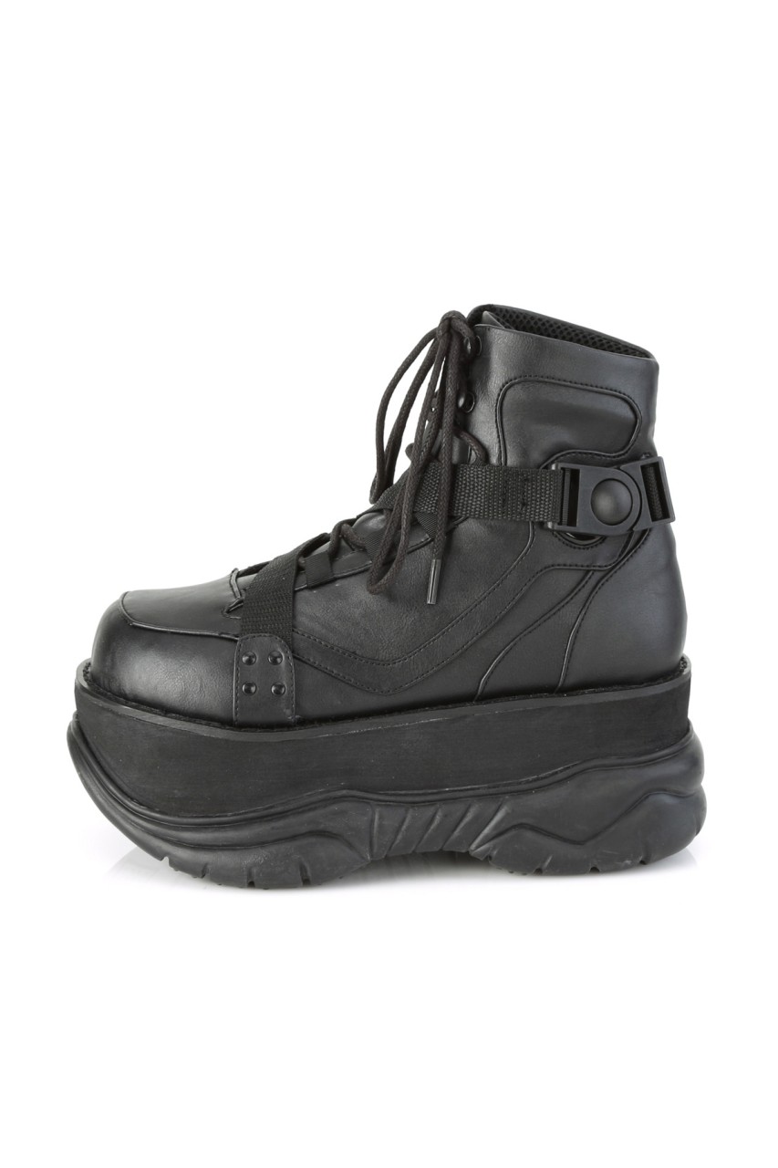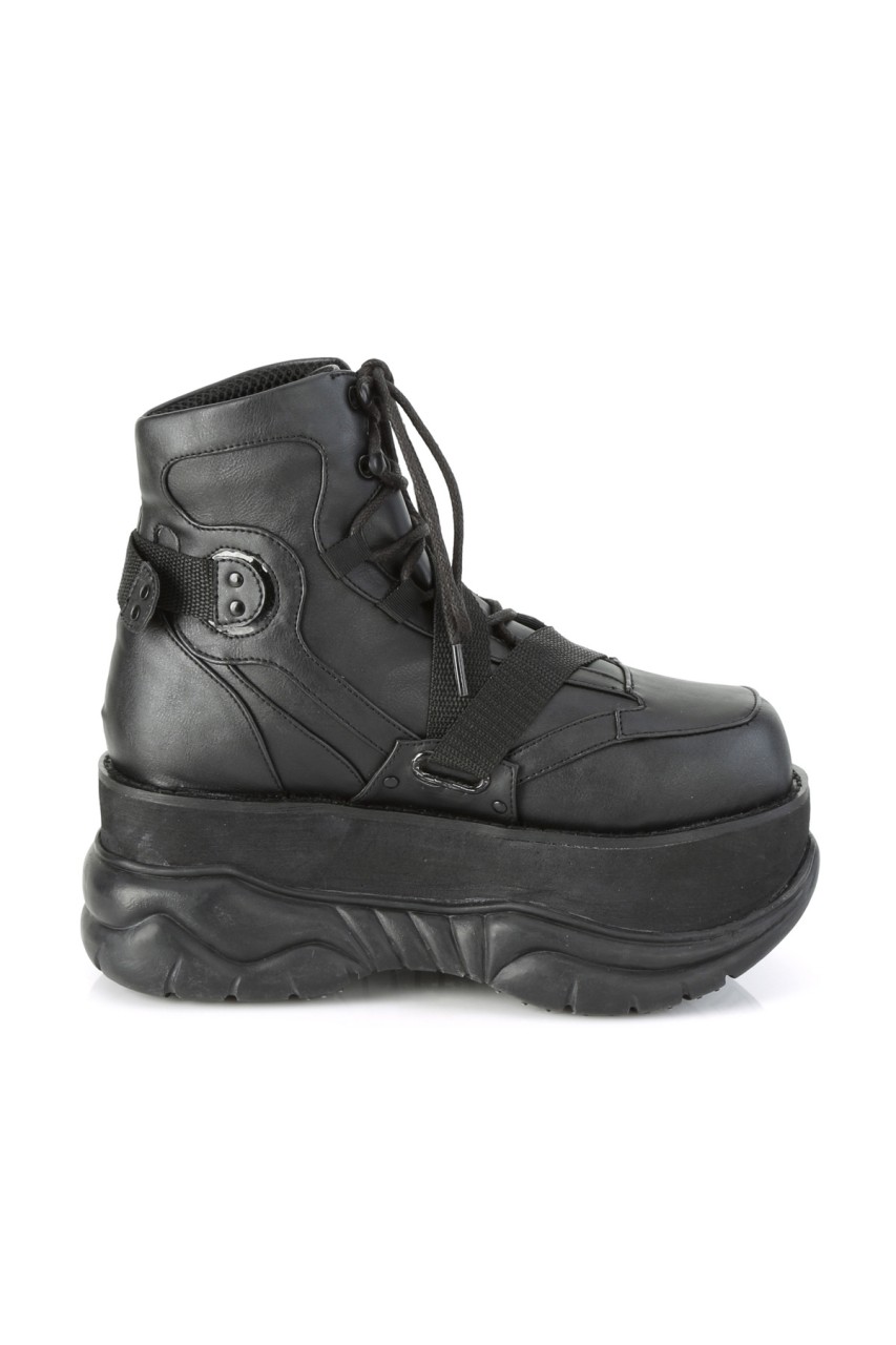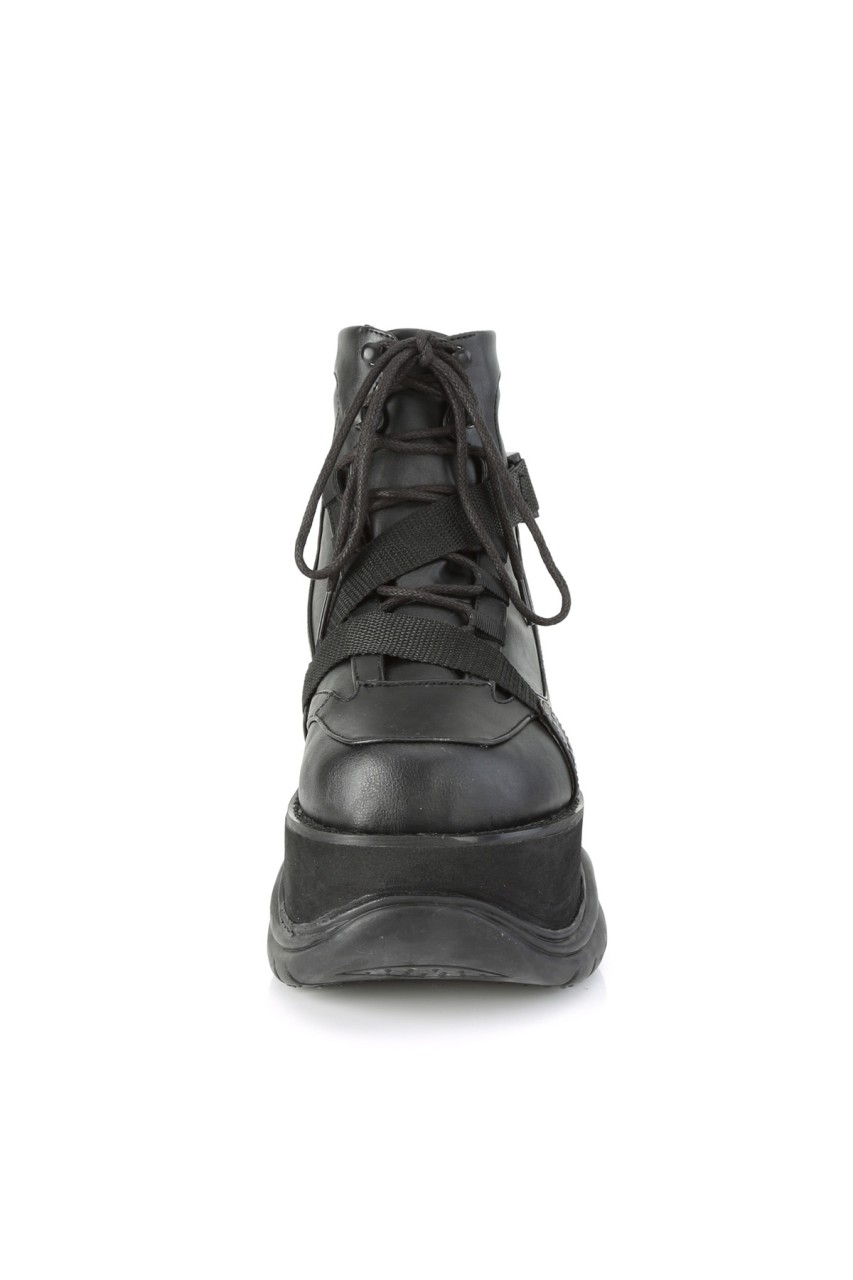 3″” (76mm) Platform Lace-Up Front Ankle Boot Featuring Zig-Zag Strap w/ Quick Release Plastic Buckle
