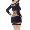 Seamless fishnet long sleeve chemise. 92% Nylon 8% Spandex. Hand Wash Cold Water, No Bleach-Line Dry