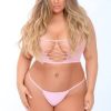 Very daring bra and open string set designed to flatter the lines of the figure and leave nothing to the imagination! Made with elastic straps and decorated in bows adorned with beautiful rhinestones. Garter included. Gloves not included. This item arrives packed in a Provocative box.