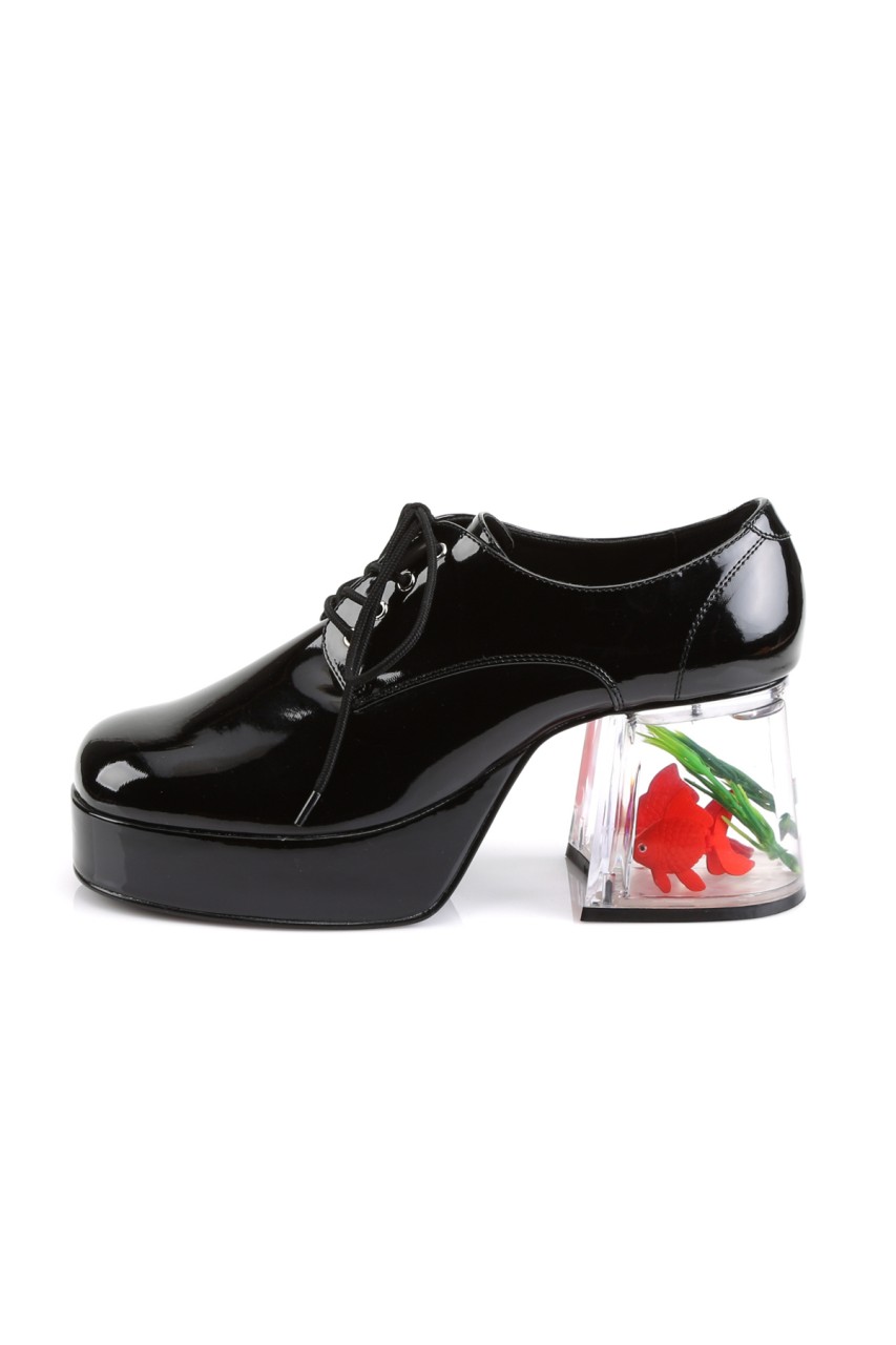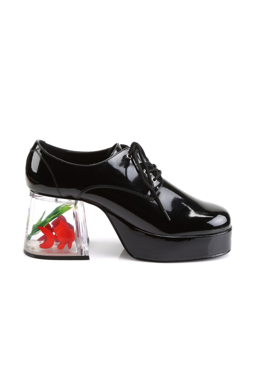 3.5″” (8.9cm) Platform, 1 1/2″” (3.8cm) Platform Men’s Disco Shoes Featuring Floating Fish Inner Side Heel