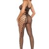 A plus halter neck bodystocking with intricate design. Item arrives packaged. Please note the thong is not included.