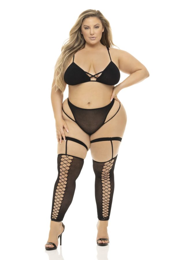 A very pretty short decorated with gorgeous lace and embroidery. The front has beautiful black mesh with delicate cream embroidery finished with cream scalloped lace at the top and bottom edges. The middle has an under layer of black soft and shiny fabric to provide decency and matches with the back of the short. The back is plain with the same soft and shiny fabric which is incredibly soft to touch and provides a slight stretch for comfort. The waistband is elasticated and finished with a complementary zig-zag stitch great for ease of fit. The sides of the short are also elasticated with black lace up detailing making this a really lovely stand out feature and also helps with the fit. And as another feature there’s a pretty little black bow at the top the short. Matching push-up bra is also available to order separately on the website. Also available in white which is perfect for bridal wear. Ginewra arrives packaged in her own Roza box with elegant branded tissue paper inside.