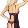 A gorgeous stretch embroidered lace black and pink babydoll with beautiful matching thong. The babydoll is underwired and has adjustable straps and a very unusual bead strap detail across the bust. Stunning embroidered lace hem. Regard Prive babydoll set arrives packaged in a lovely Provocative box. A matching chemise and open body are available separately, please see related products.