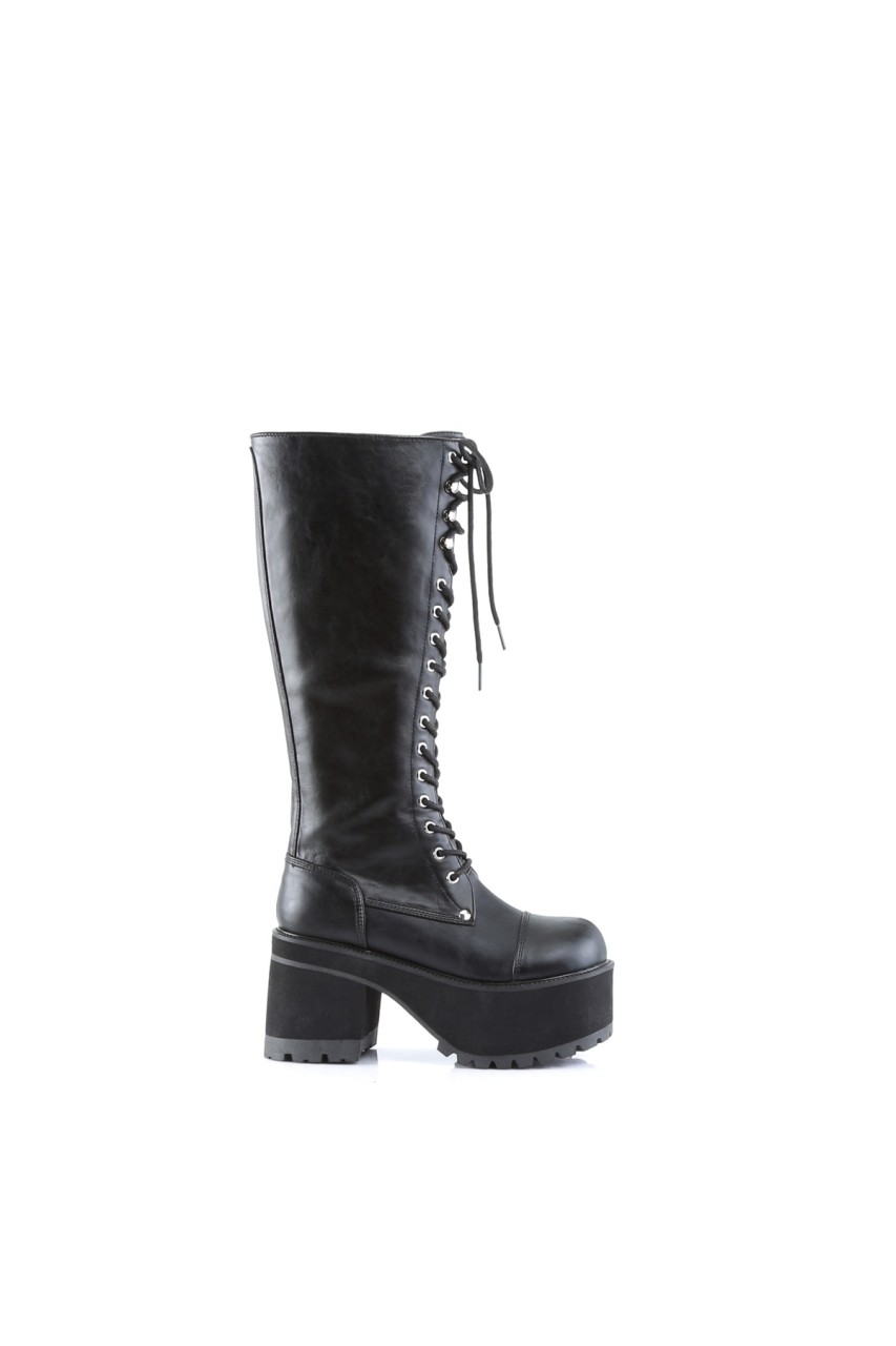 4″” (10.2cm) Platform Goth Punk Knee Boot with Full Inner Side Zip Closure