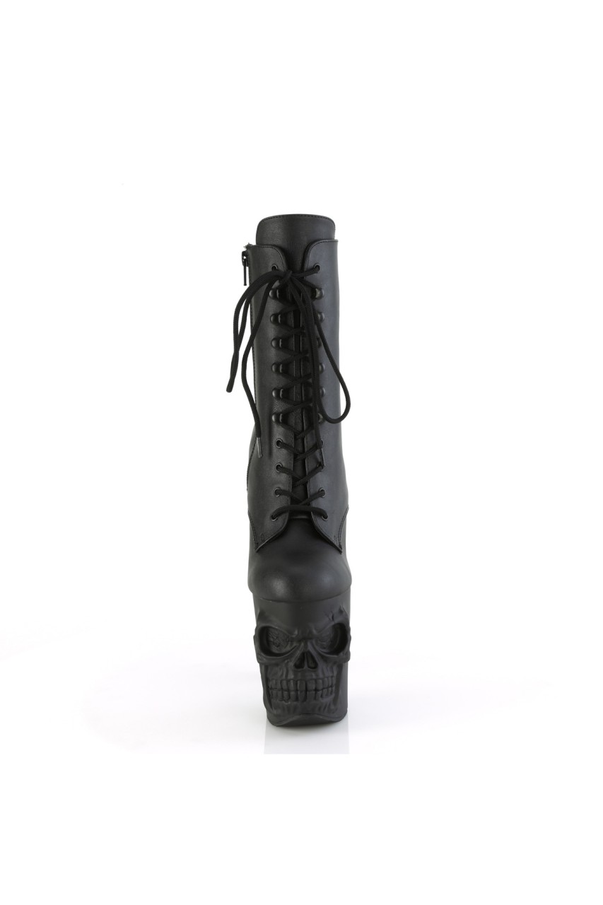8″” (200mm) Finger Bone Heel, 4″” (100mm) Skull Sculpted Platform Lace-Up Front Ankle Boot, Inner Side Zip Closure