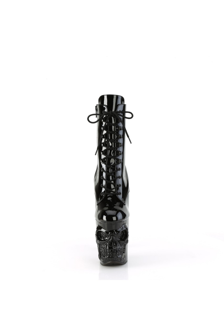 8″” (200mm) Finger Bone Heel, 4″” (100mm) Skull Sculpted Platform Lace-Up Front Ankle Boot, Inner Side Zip Closure