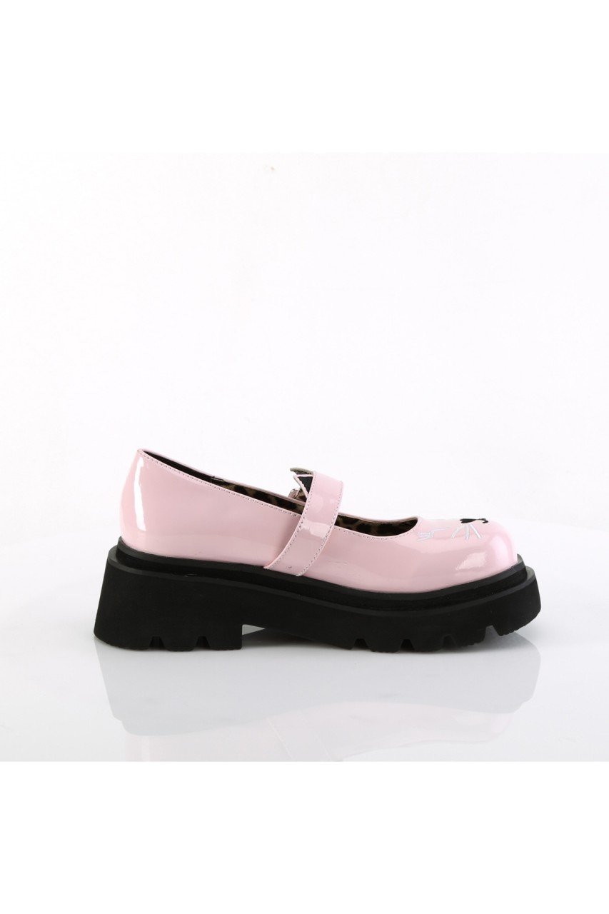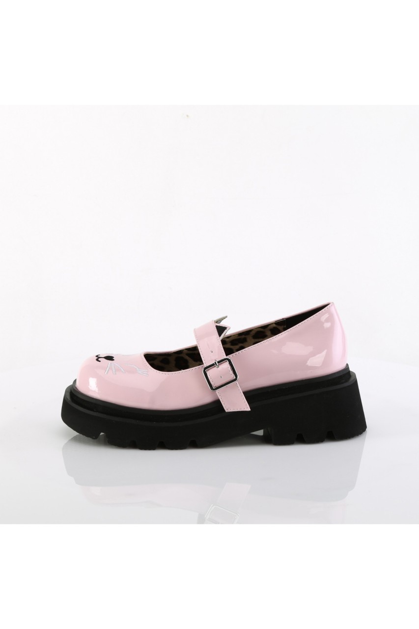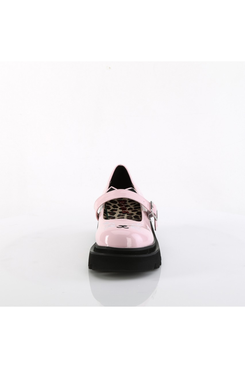 2 1/2″” Tiered Platform Maryjane Featuring Embroidered Cat Face on Toe and Ears on Strap