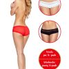 The Romance á Deux collection is a stunning and sensual new collection that uses beautiful embroidery and components which gives a sexy and stylish look – perfect for Valentine’s! A lovely pack of 3 shorty briefs in Red White and Black. Be spoiled with not only one shorty brief but three! Each shorty brief has the same design and features a beautiful frilly ruffle decoration and to finish it off it also includes piping elastic stretch trim across the top with a matching pretty satin bow. Very comfortable to wear and soft to touch. All items are attached by the signature provocative tag and come packaged in a Provocative box.