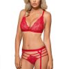 Roza have dazzled us with their fresh new style featuring in-trend pieces ranging from flaunty bralettes to seductive thongs. The Cyria collection consists of a lacy bralette style soft cup bra suspender belt and brief. Available in traditional black or romantic red. Cyria is a romantic suspender belt crafted with outstanding geometrics. Extremely HOT red material. Provided with a super thick waistband side adjustments and 3 hook and eye fastening at the back to get the perfect fit. V-shape design on the front and the back with detachable suspender straps. Suspender straps are adjustable and finished with ribboning at the ends and metal rubber suspender clasps. Complete with your matching brief or bralette which is available to be ordered separately via the website. Cyria arrives packaged in her own branded Roza box with lovely tissue paper inside.