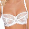 Kalisi is an exciting three section cup soft-cup bra beautifully decorated with gorgeous floral embroidery and scalloped lace edging. On the cups are beautiful and shiny embroidery which sits on complementary netting. Between the cups sits a lovely satin bow. The wings are decorated with plain soft and gentle fabric and have great support with side boning. Overall adequate support bra complements the fuller figure. Available in black and white. Push-up bra brief and thong all available separately. Kalisi arrives packaged in her own Roza box.