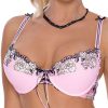 Natali is a beautiful floral embroidered bra. Lovely lace up detail to the centre of the bust. Matching brief thong and suspender belt sold separately. Available in pink (black version also available). Item arrives packaged in its own Roza box.