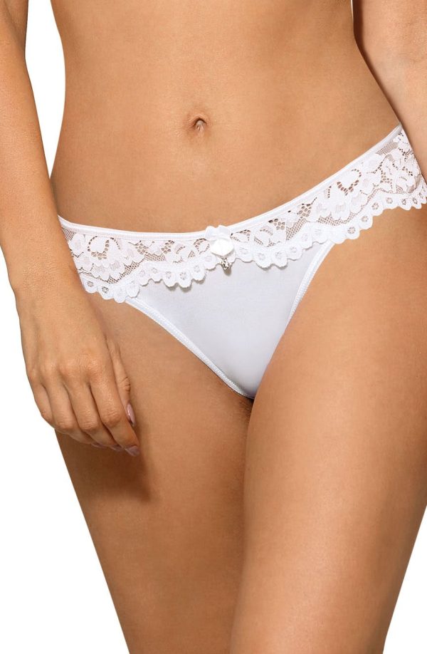 Newia Brief in white (shown in the picture with the soft cup bra option) is super soft with all over lace at the back. The front has lovely scalloped lace to match the push up or soft cup bra options. The brief has a lovey satin ribbon bow and diamante detail. Brief bra and thong options are all sold separately available in four colours and arrive packaged in their own lovely Roza box.