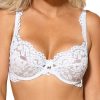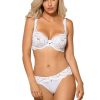 Newia is a lovely lacey collection from Roza offering a choice of four colours push up or soft cup bra options along with a delicate thong or brief. All items are available separately making them a ideal for mix or match options. The lacey white soft cup bra is decorated with a centre satin ribbon bow and diamante. The beautiful scalloped edges and decorated straps add to Newia’s feminine charms. Adjustable shoulder straps and hook and eye fastener at the back. This item arrives packaged in a lovely Roza box.