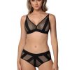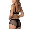 The Pasomela brief in black is a statement in refined luxury. With sheer, delicately structured mesh panels that offer a seductive glimpse, these high-waist briefs master the art of understated allure. The satin-like bands sculpt the waist and hips, creating a striking geometric silhouette that blends sophistication with a bold, contemporary edge. From the back, the design is nothing short of exceptional—elegant intersecting straps frame and enhance your natural curves, delivering a show-stopping finish. The soft black hue exudes elegance, while the architectural detailing ensures this piece stands out as an exclusive, high-fashion essential. The bra, thong and straps are available separately.