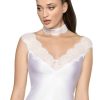 Beautiful soft stretch fabric decorated with oodles of sumptuous eyelash lace. The shoulder straps are made of eyelash lace and are designed to be worn on the shoulders ( due to the design of this top they are not adjustable). The lace necktie is included. Sija arrives packaged in her own Roza box making this item ideal as a gift or treat. The sija collection comprises shirt nightshirt briefs and shorts in a choice of black or white. Please see related products for further details.