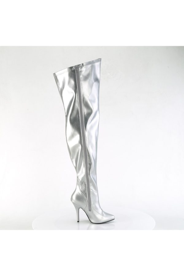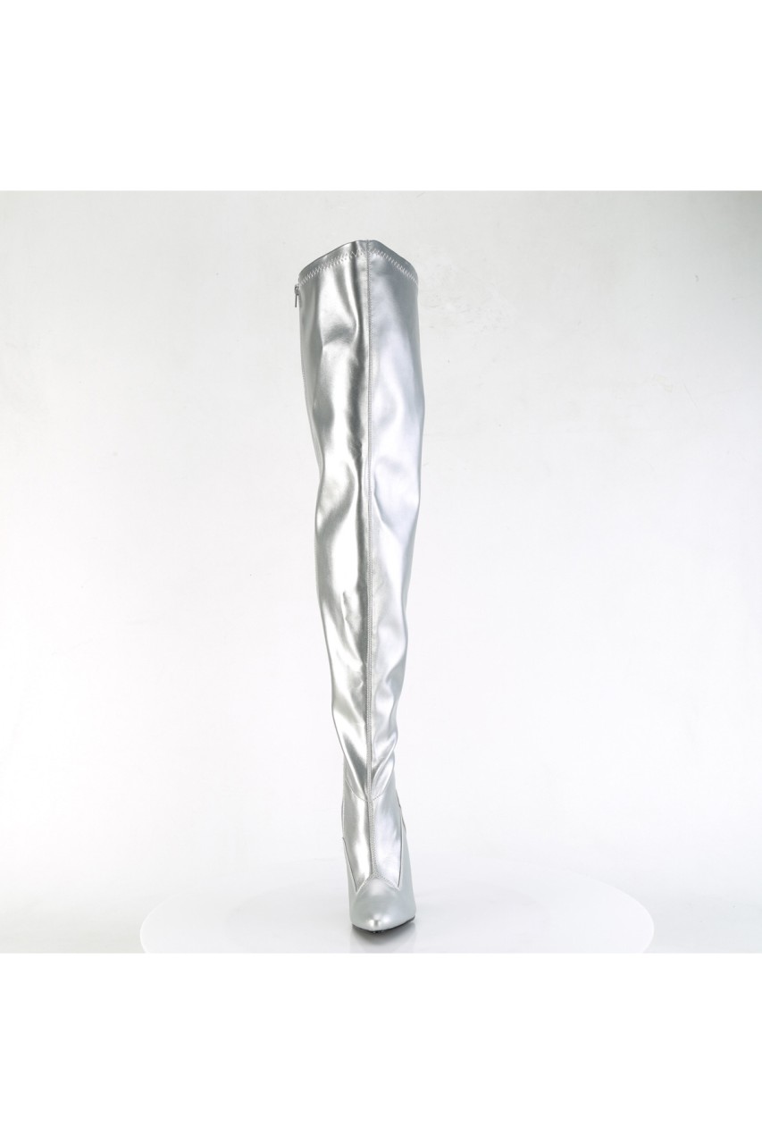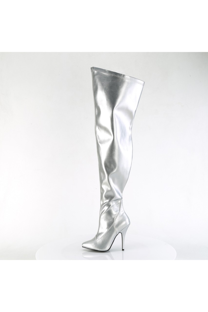 5″” (127mm) Stiletto Heel Wide Shaft Stretch Thigh High Boot, Full-Length Inner Side Zip Closure