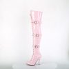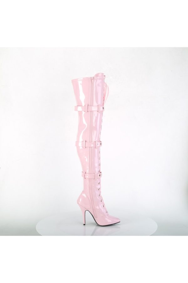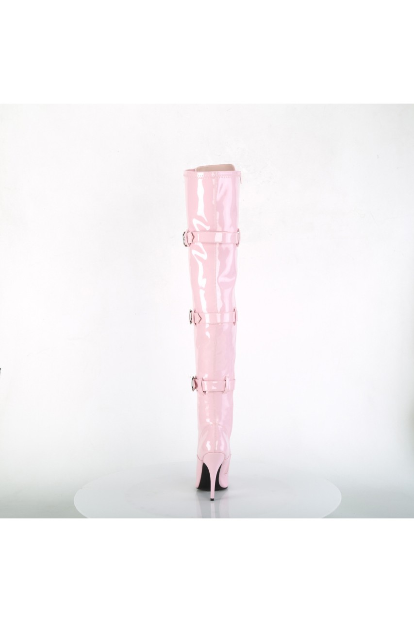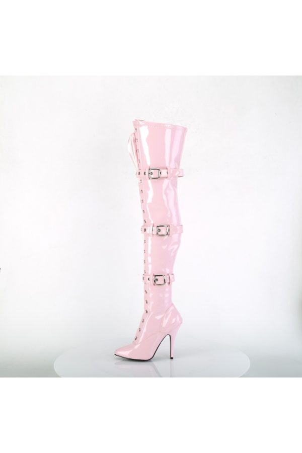 5″” (127mm) Heel Ribbon Lace-Up Front Triple Buckle Strap Stretch Thigh High Boot, Full Inner Side Zip Closure