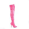 5″” (127mm) Heel Ribbon Lace-Up Front Triple Buckle Strap Stretch Thigh High Boot, Full Inner Side Zip Closure