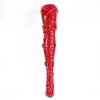 5″” (127mm) Heel Ribbon Lace-Up Front Triple Buckle Strap Stretch Thigh High Boot, Full Inner Side Zip Closure