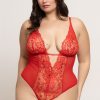 Lurex lace and mesh teddy with removable rhinestone chain detail, adjustable straps, gold hardware, and open crotch