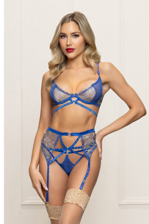 Seven til Midnight – Three piece bra set. Lurex lace and mesh bra with underwire – STM11692