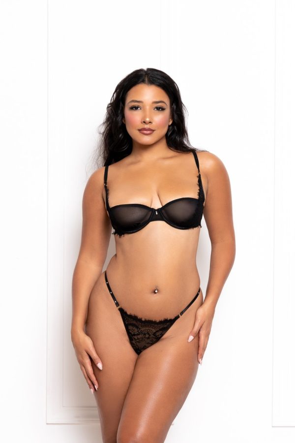 ALL ITEMS IN ‘GRACE’ AND ‘SCARLET’ ARE INTERCHANGEABLE! Scarlet is beautifully decorated in pretty roses with sheer lace panels and polka dots. All items are available in white or black. Item arrives packaged in its own Roza box.