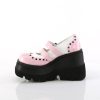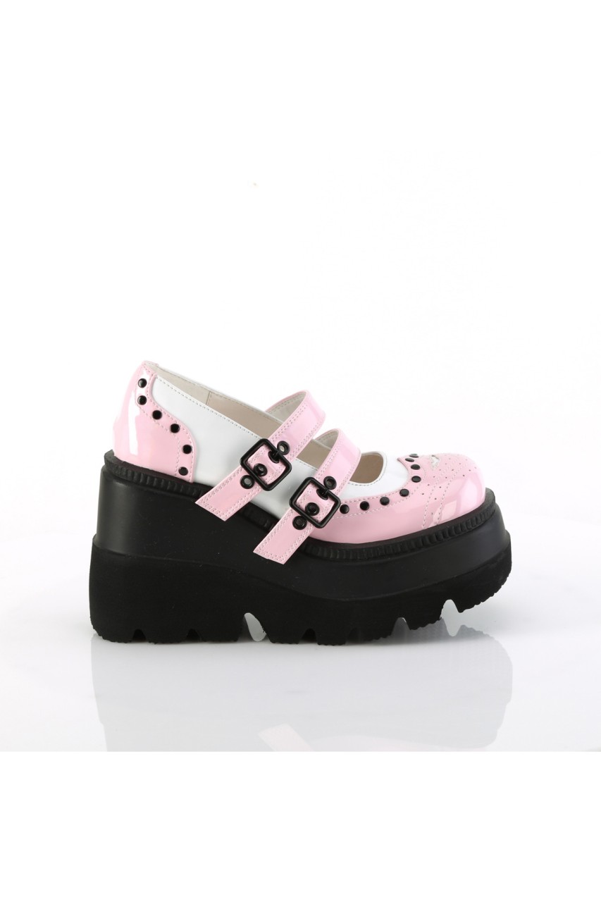 4 1/2″” (114mm) Wedge Platform Double Buckle Strap Wingtip Maryjane Featuring Silver-Tone Flat Round Studded Vamp and Heel