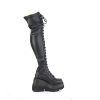 4 1/2″” (114mm) Wedge Platform Lace-Up Stretch Thigh-High Boot, Full Length Outside Metal Zip Closure