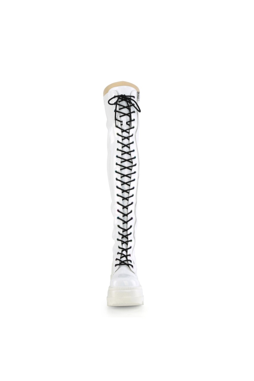4 1/2″” (114mm) Wedge Platform Lace-Up Stretch Thigh-High Boot, Full Length Outside Metal Zip Closure