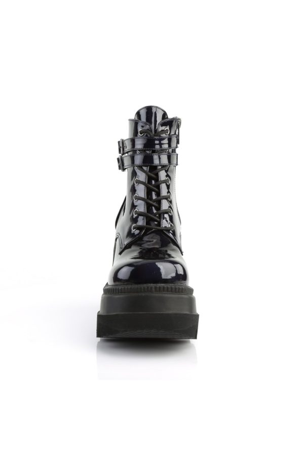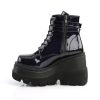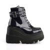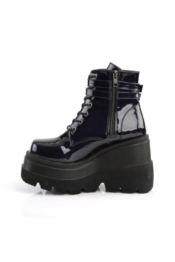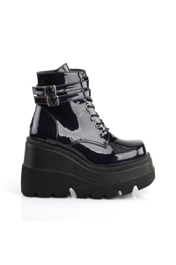 4 1/2″” (114mm) Wedge Platform Lace-Up Front Ankle Boot w/ Double Buckled Ankle Straps, Inner Side Zip Closure