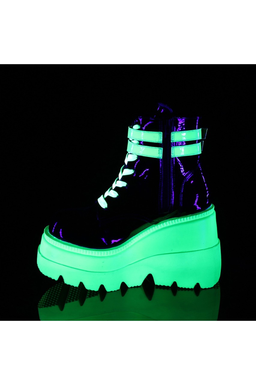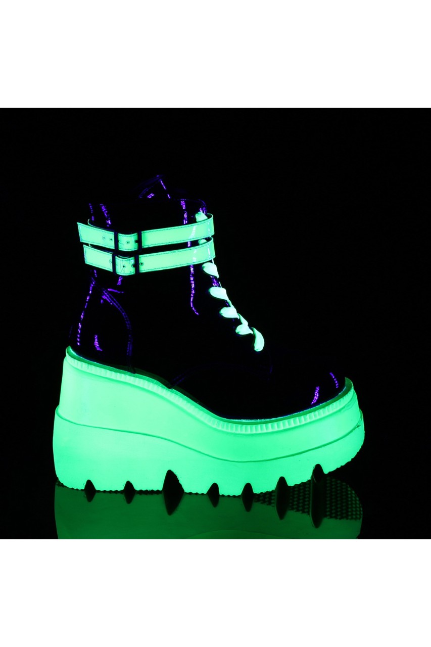 4 1/2″” (114mm) Wedge Platform Lace-Up Front Ankle Boot w/ Double Buckled Ankle Straps, Inner Side Zip Closure
