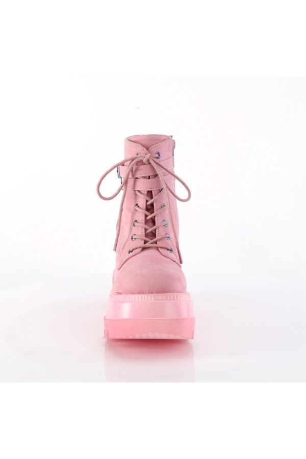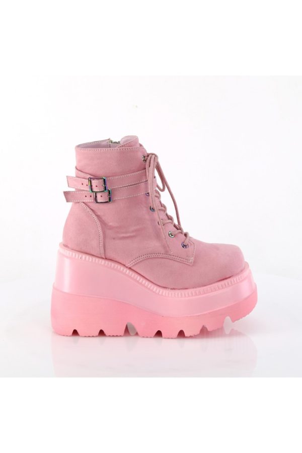 4 1/2″” (114mm) Wedge Platform Lace-Up Front Ankle Boot w/ Double Buckled Ankle Straps, Inner Side Zip Closure