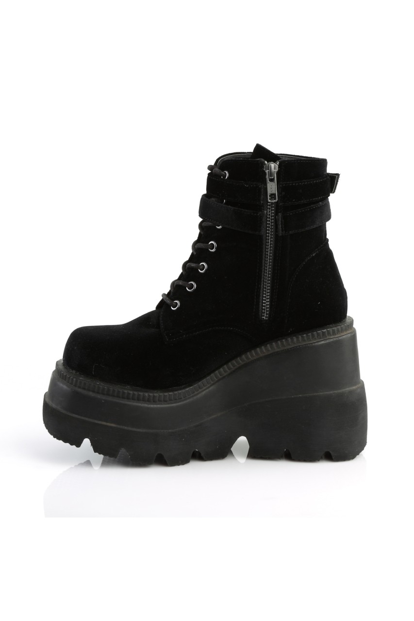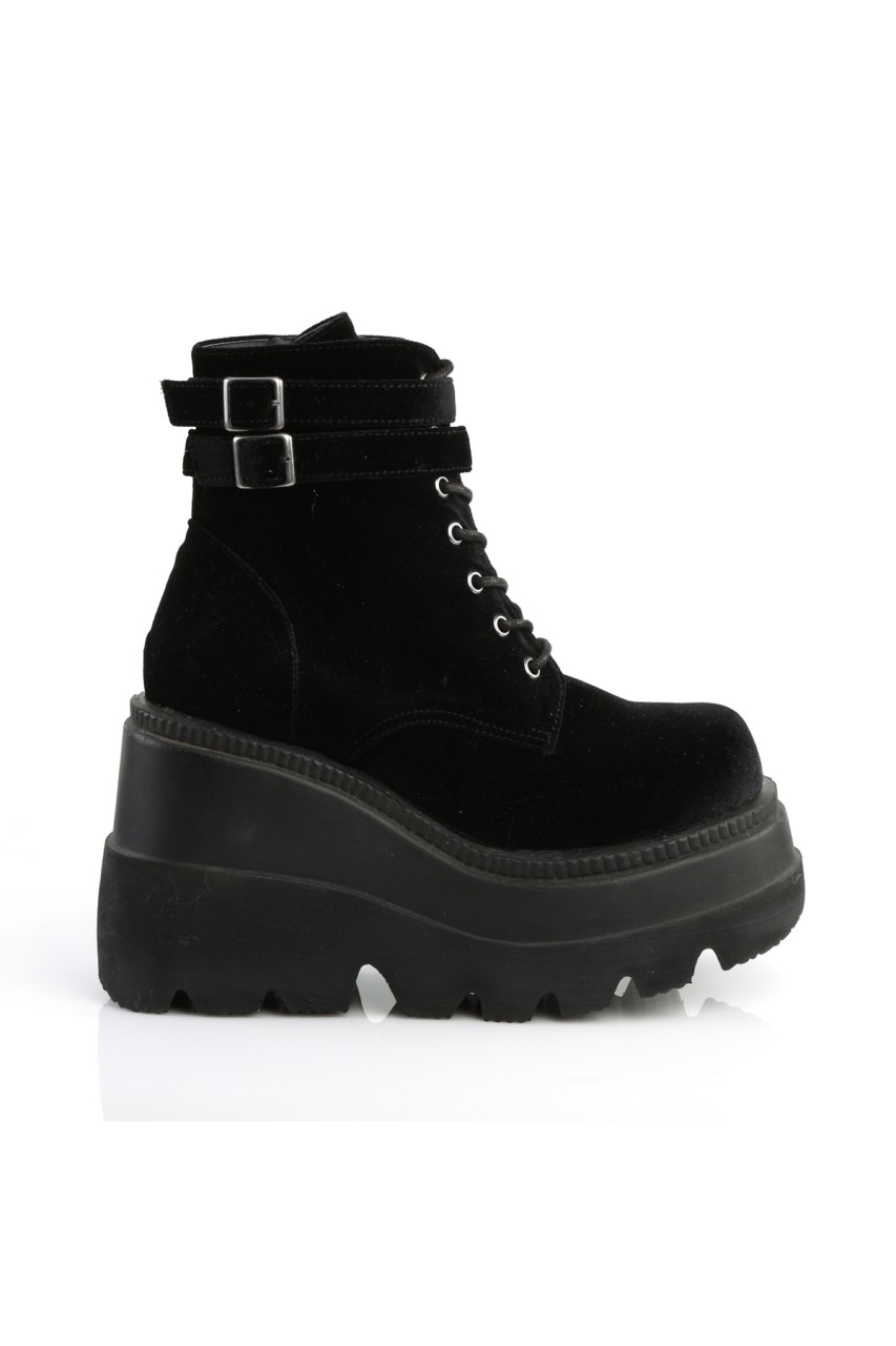 4 1/2″” (114mm) Wedge Platform Lace-Up Front Ankle Boot w/ Double Buckled Ankle Straps, Inner Side Zip Closure