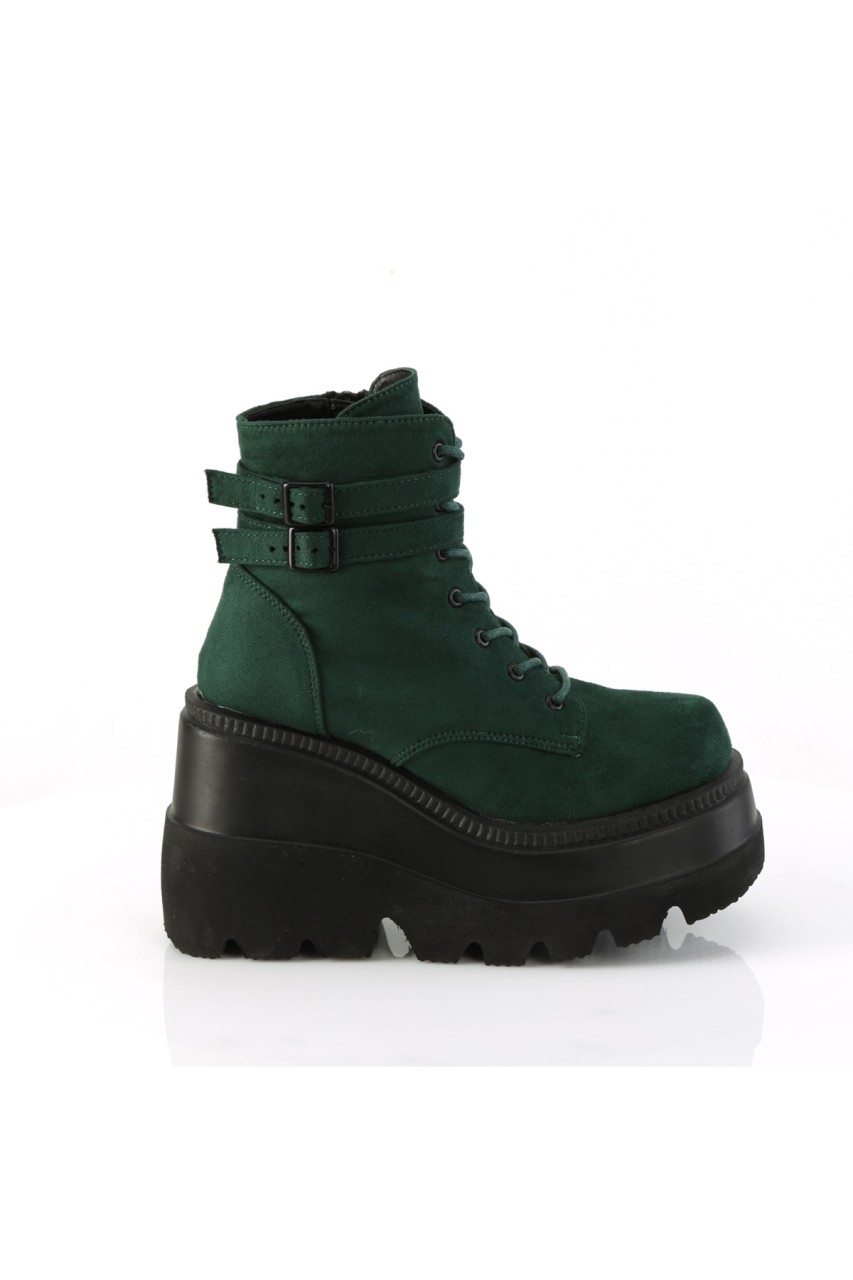 4 1/2″” (114mm) Wedge Platform Lace-Up Front Ankle Boot w/ Double Buckled Ankle Straps, Inner Side Zip Closure
