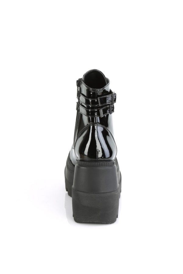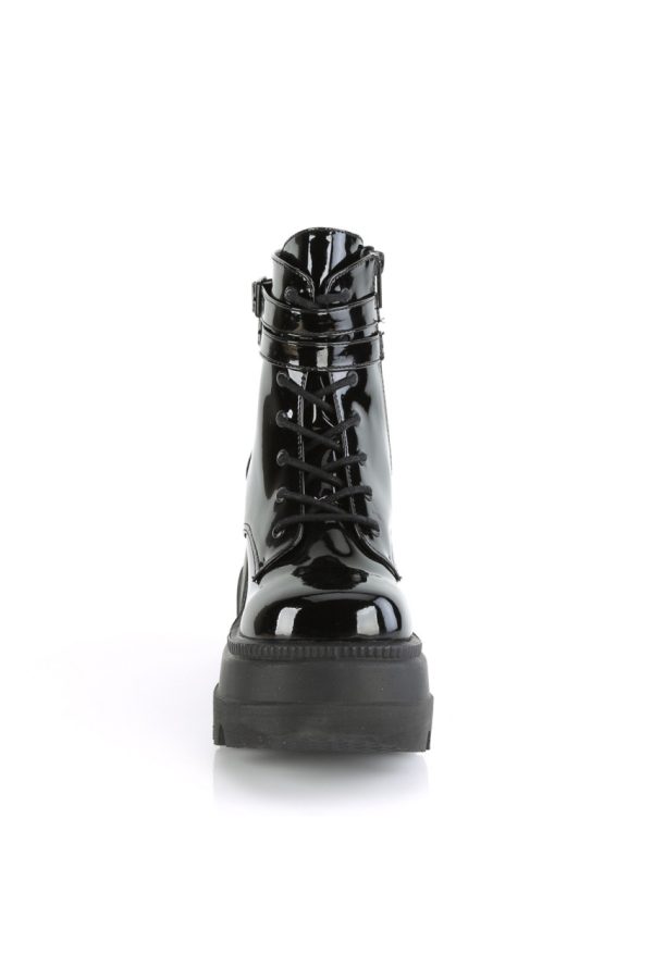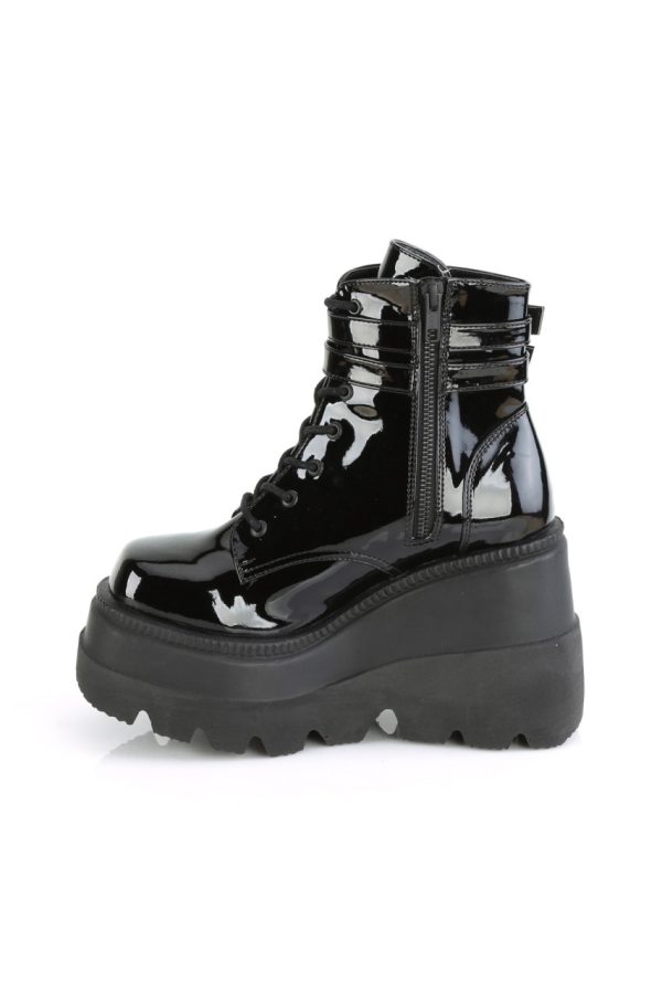 4 1/2″” (114mm) Wedge Platform Lace-Up Front Ankle Boot w/ Double Buckled Ankle Straps, Inner Side Zip Closure