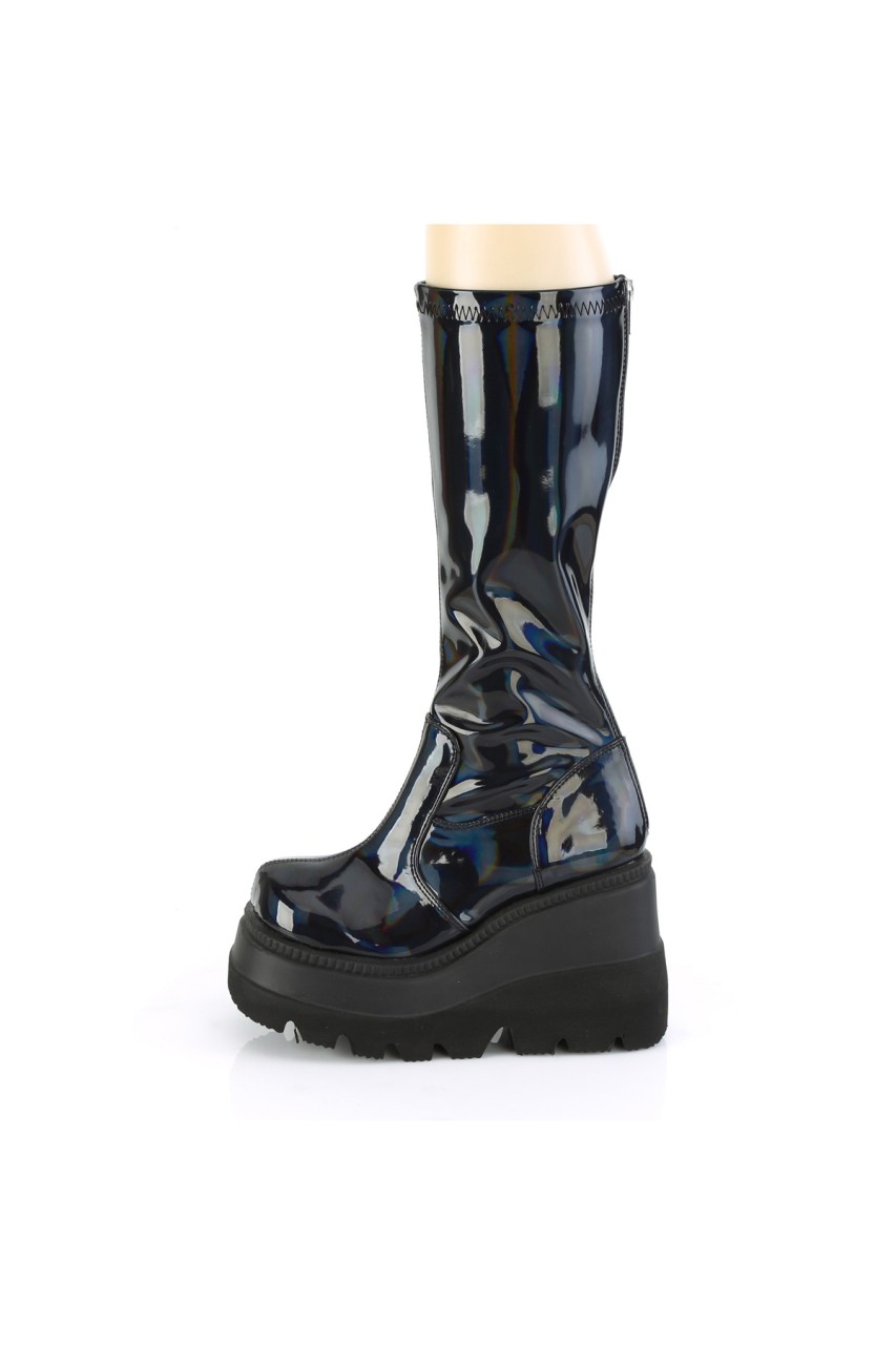 4 1/2″” (114mm) Wedge Platform Stretch Knee High Boot , Full Length Back metal Zip Closure
