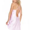 Luxurious charmeuse chemise with exquisite overlapping gorgeous lace. Criss-cross adjustable straps with low back. Available in pink icing turquoise buttercup yellow fall violet spring green. Also available in Plus Size.