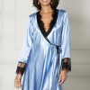 Silky feeling Charmeuse and black Eyelash Lace mid length SHORT ROBE with wrap front inner tie as well as outer tie. There is a matching chemise (model 31511) which is not included but can be purchase separately to make the ultimate Pegnoir Set. Also available in other colours and plus sizes, please see related products. PLEASE NOTE: back image show in blush/black for illustrative purposes.