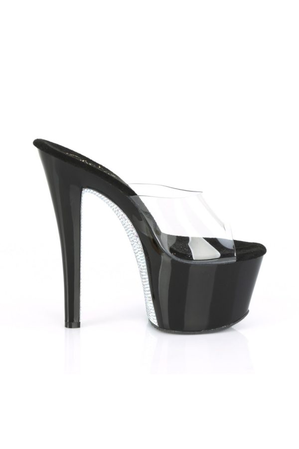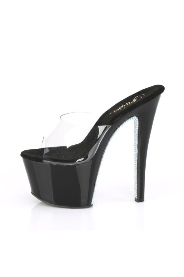 7″” (178mm) Heel, 2 3/4″” (70mm) Platform Slide w/ Contrast Rhinestones on the Platform Bottom