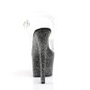 7″” (17.8cm) Heel, 2 3/4″” (7cm) Platform Ankle Strap Sandal Featuring Mini Iridescent Glitter on the Entire Platform