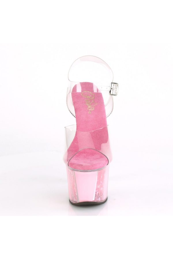 7″” (178mm) Heel, 2 3/4″” (70mm) Platform Ankle Strap Sandal Featuring Opal Flake Ornaments on the Platform Bottom
