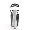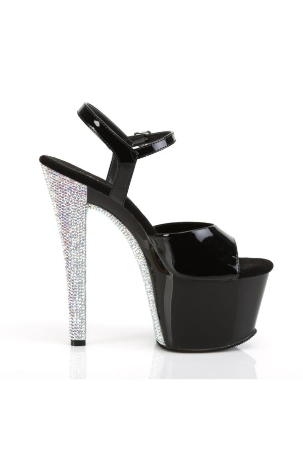 7″” (178mm) Heel, 2 3/4″” (70mm) Platform Ankle Strap Sandal w/ Contrast Rhinestones on the Heel & Platform Bottom