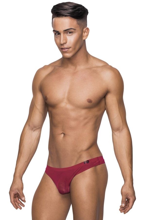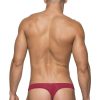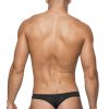 Thong low rise waist, 1 inch back, plush cotton waistband, stamped logo, shaft pouch